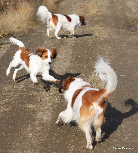 Loppuvuoteen kuuluu lähinnä aksaharrastamista ja - kisoja ja Aroonan sosiaalistamistreenejä näyttelykoulutuksessa ja aksatreenien ohella. Käymme pyörähtämässä kahdesti ulkomailla, Hollannissa kooikereiden Clubshow:ssa, jossa mukana näillä näkymin on Shanti ja Adya, ja sitten Liettuassa joulukuussa kahdessa inttinäyttelyssä Shantin ja Preetin kera. Shanti on myös ilmoitettu tervehtimään Eeva Rautalaa Vuoden voittajaan Messariin. Viimeksi muutama vuosi sitten tuomari tykkäsi Shantista hurjan paljon, joten on jännä nähdä miten tänä vuonna käy.