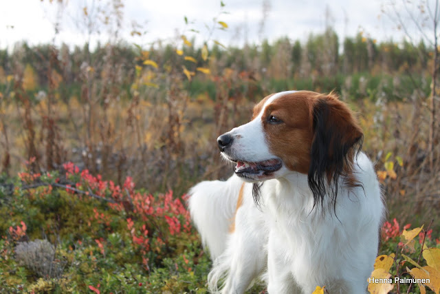 Aroona on kehittynyt mukavasti, pentuna se on todella helppo ja lunki, tyytyväien vähään, mutta silti reaktioissaan säpäkkä ja kehokoordinaatio on päivittäisten pitkien maastolenkkien ansiosta kehittynyt huimasti. Roo on viihtynyt mukana aksakentällä ja osaa suvereenisti hakea itsenäisesti putkia, niille voi tehdä vaikka mitä lähetyksiä, takaaleikkauksia ja hankalempiakin kulmia. Muuta ei aksan suhteen olla tehty, lähinnä keskitytään siihen, että trenipaikalla on kivaa, siellä tapaa mukavia ihmisiä ja joskus löytyy joku koirakin, johon voi tutustua treenien ohella. Aloitimme myös näyttelytreenit tällä viikolla, paikka jännitti kovasti, mutta selvittiin kuitenkin oikein hienosti. Roo on ollut myös hoidossa useammassa paikassa, tällä hetkellä tyttö on veljelläni, ja päässyt päiväksi eräopaskouluun, nuotion ääreen opettelemaan liharuokien tekoa. On kuulema ollut hyvin reipas eikä ole pelännyt erikoisemmin mitään. Lopuksi oli saanut herkutella loimulohella. Ai että miten mukava päivä, ja huomenna pääsee vielä uudestaan veljen matkaan mukaan.
